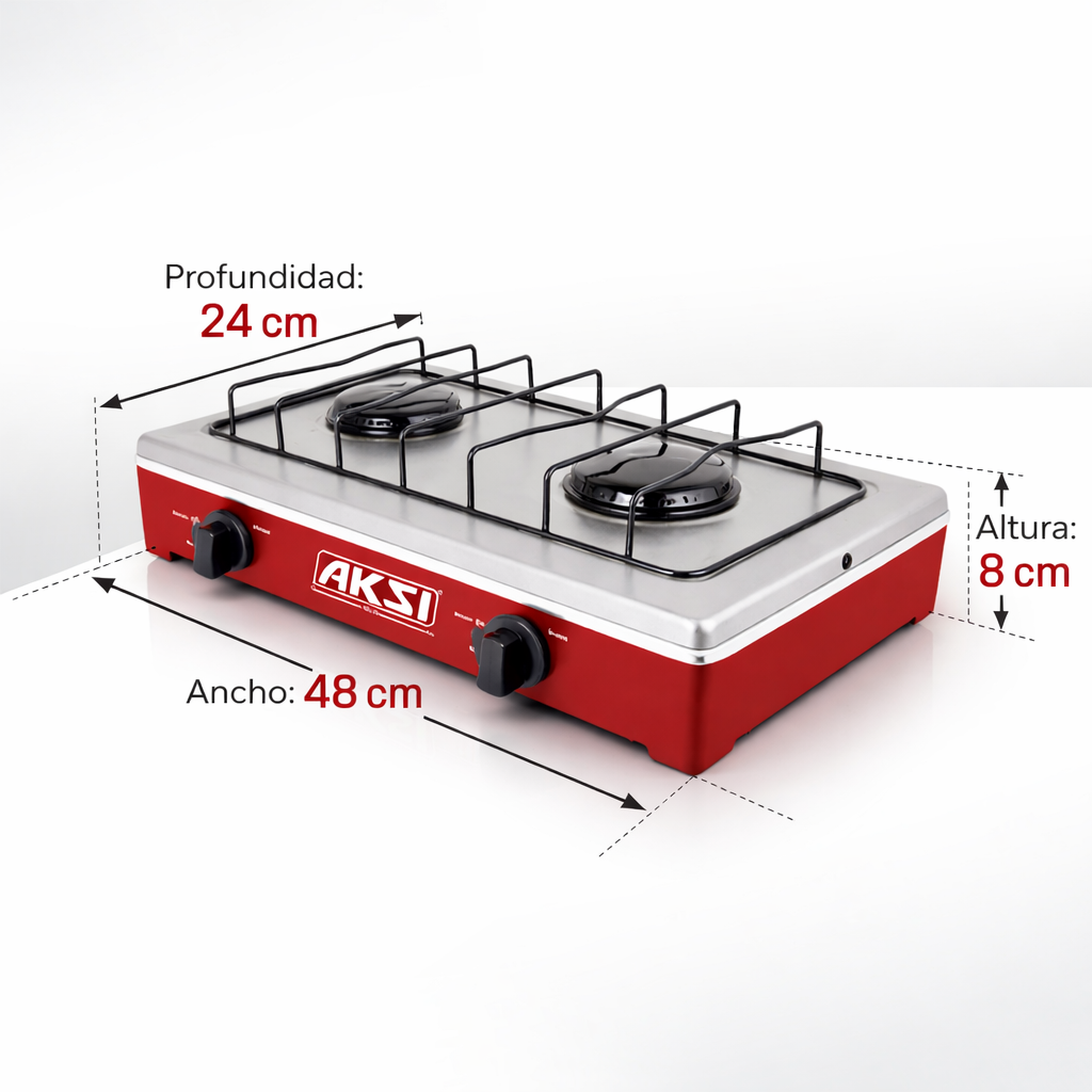 AKSI parrilla para sobre poner rojo acer inox 116033 es una opción práctica y funcional para quienes buscan una solución eficiente de cocción en espacios domésticos, cocinas auxiliares, departamentos, áreas de servicio o zonas donde se requiere aprovechar mejor el espacio disponible. Su diseño compacto permite colocarla fácilmente sobre superficies planas, ofreciendo una instalación sencilla y una operación confiable para el uso diario.