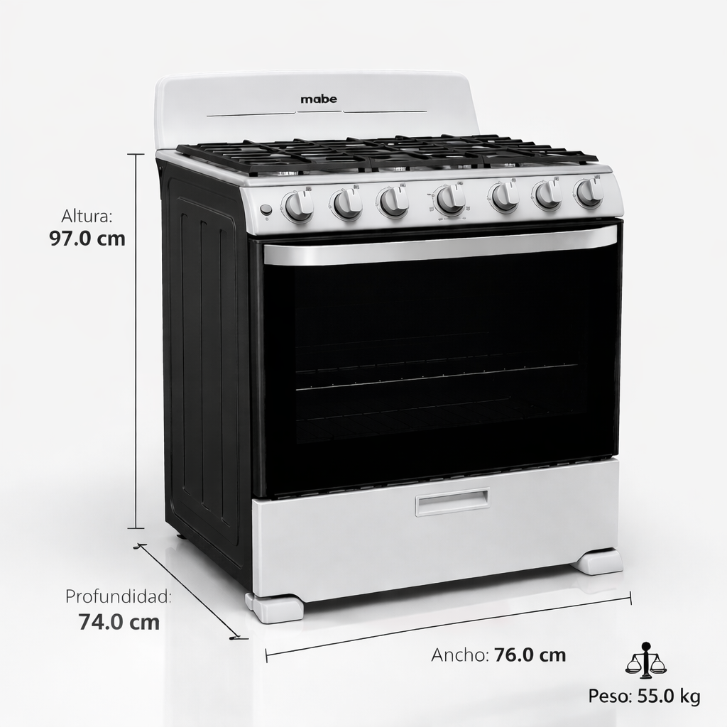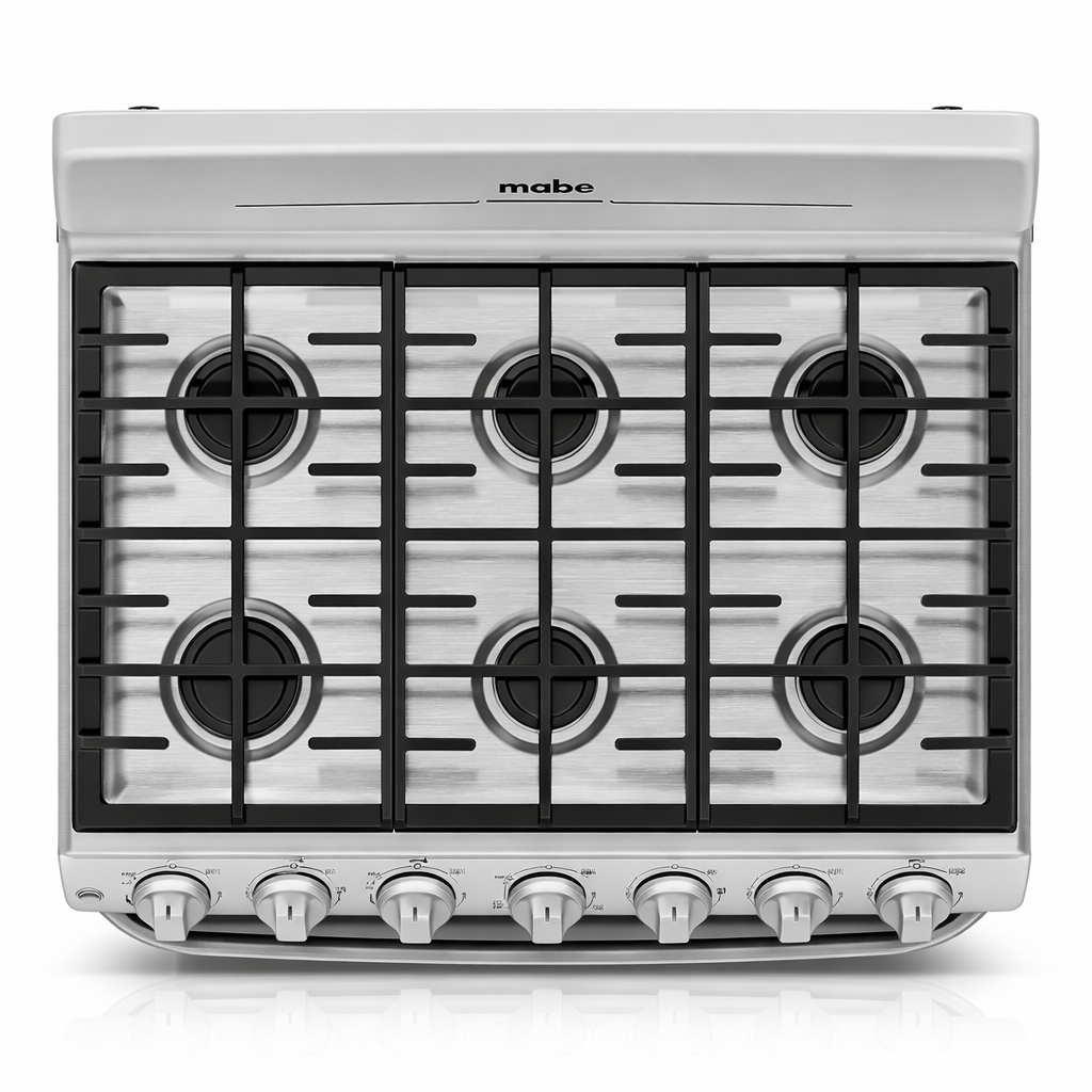 ESTUFA MABE 30¨ 6 QUEMADORES PARRILA ALAMBRON PUERTA PANORAMICA EM-7646BSISO/1/2 SILVER ES7646 es una solución integral para quienes buscan eficiencia, potencia y practicidad en la cocina. Diseñada con tecnología avanzada, esta estufa ofrece un desempeño superior gracias a su configuración de quemadores, capacidad de horno y materiales resistentes que garantizan durabilidad en el uso diario.