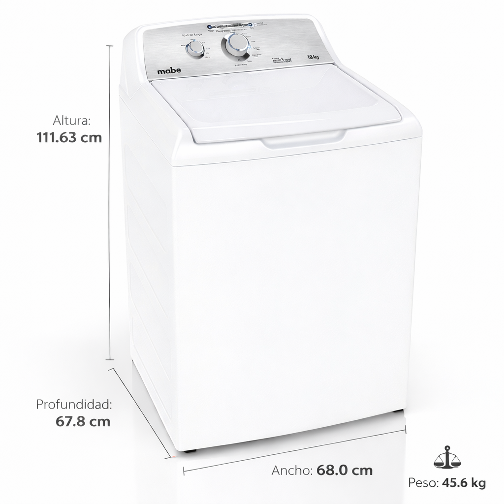 LAVADORA MABE 18 KG AUTOMATICA 7 CICLOS LMA78112CBAB0 LAM112 es una solución eficiente y moderna para el lavado doméstico, diseñada para ofrecer alto desempeño, ahorro de recursos y cuidado avanzado de las prendas. Gracias a su capacidad de 18 kg, permite procesar cargas grandes en menos ciclos, optimizando tiempo, agua y energía en cada uso.