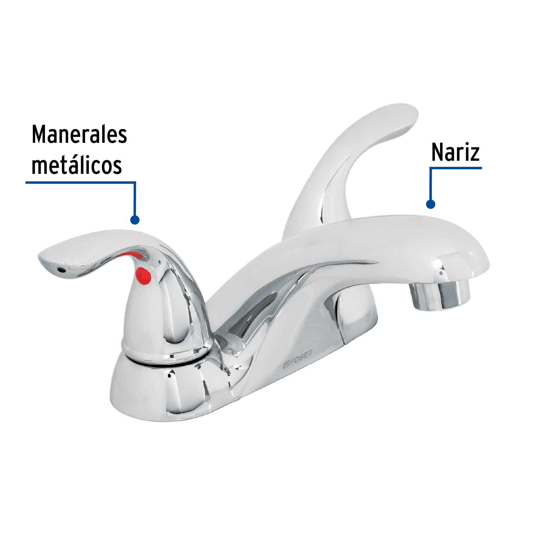 FOSET MEZCLADORA LAVABO AEM-41 49763 DESCONTINUADO es una mezcladora de 4 pulgadas diseñada para lavabo, perteneciente a la línea FOSET AERO, reconocida por su estructura robusta y materiales metálicos de alta resistencia. Este modelo ofrece configuración tradicional con manerales independientes y nariz larga, facilitando mayor alcance del flujo de agua en el área del lavabo.