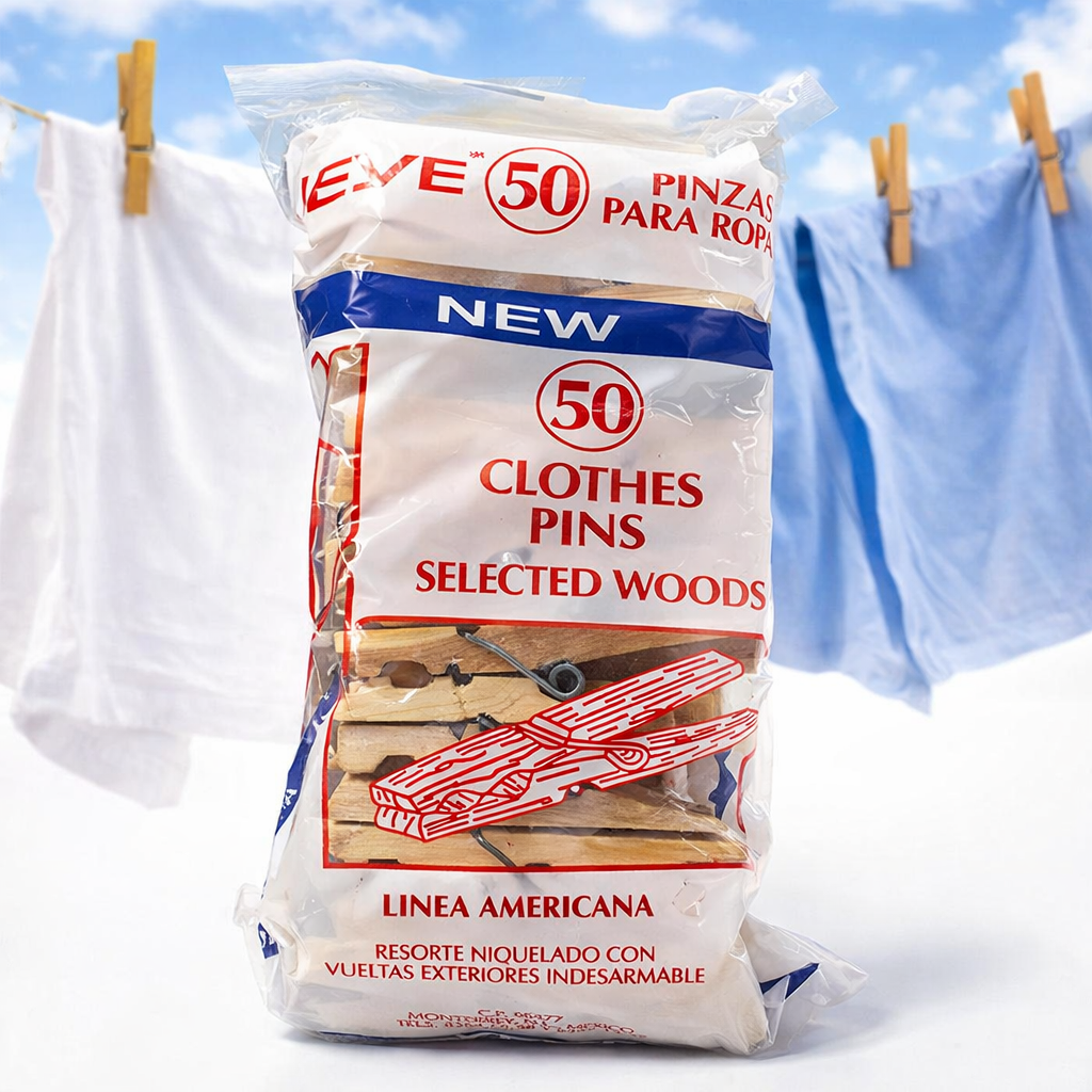 Pinza para ropa de madera 50 piezas diseñada para sujetar prendas de manera firme y segura durante el secado. Este producto es una solución práctica para el uso diario en el hogar, permitiendo colgar ropa sin dañar las telas. Además, su fabricación en madera ofrece un agarre confiable y una apariencia clásica, ideal para tareas domésticas básicas.
