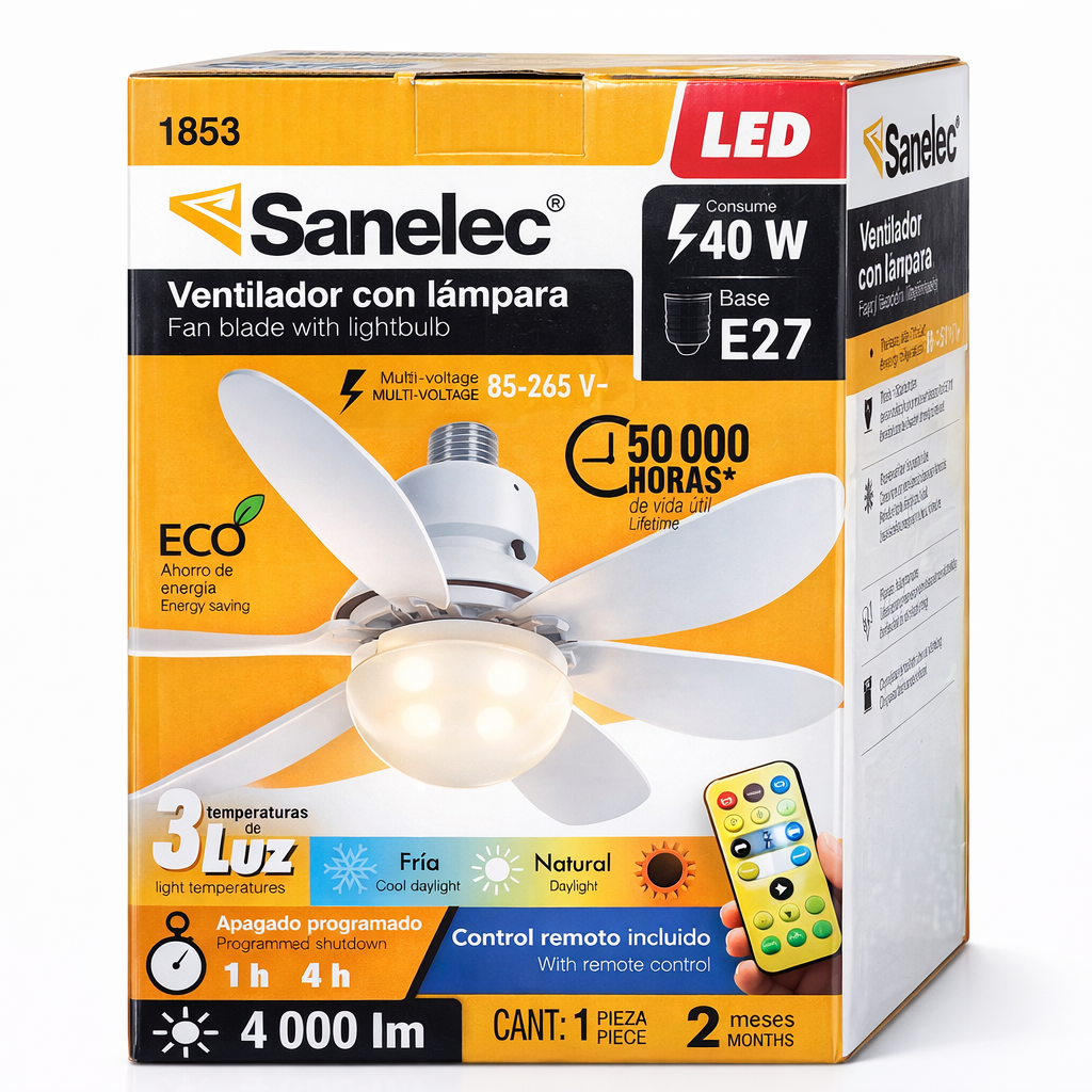 SANELEC VENTILADOR CON LAMPARA 85-265-V LED